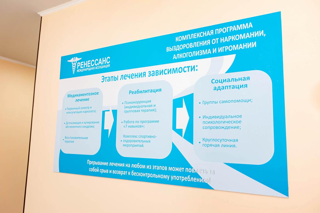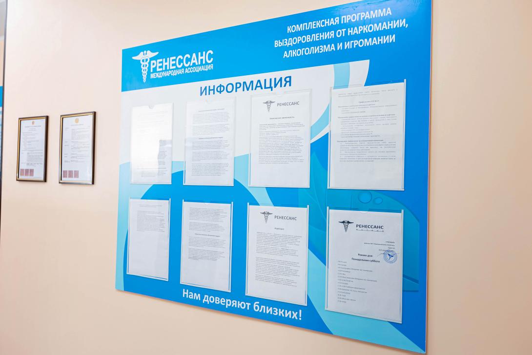 "Ренессанс" – Астана заттардан тәуелді адамдарға көмек көрсетудің заманауи медициналық орталығы. Біздің клиникада жоғары білікті медициналық мамандар жұмыс істейді, олар 10 жылдан астам уақыт бойы 24/7 режимінде алкоголь мен есірткіге тәуелді адамдарға медициналық көмек көрсетеді.